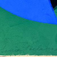 Ce livre illustré fut édité par la galerie Denise René à l’occasion d’une exposition d’une quarantaine de gouaches de l’artiste la même année. Le procédé du pochoir à la gouache permet le rendu de couleurs éclatantes et solides. On ne peut qu’apprécier la maîtrise de l’abstraction géométrique de l’une des plus grandes représentantes de l’orphisme. La composition s’articule autour d’aplats noirs en demi-cercles, dont la présence est soutenue par des zones grises. Le fondement du rythme ainsi donné, les apports de bleu, de rouge et de vert équilibrent la mélodie. L’œuvre est l’aboutissement magistral de ce que l’artiste décrit comme le contraste simultané des couleurs.