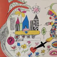 Dans cette œuvre typique de son style des années 70, le trait est d’une précision méticuleuse, les couleurs d’une vivacité stimulante. On retrouve cet aspect joyeusement enfantin du dessin de l’artiste, qui se sert de son art comme d’une sorte de journal pour exprimer son état d’esprit ou sa perception du monde. Elle juxtapose des figures et des objets sans créer une narration. Ils sont comme des symboles de son univers artistique, ils sont le monde de Niki de Saint-Phalle.