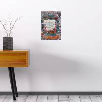 Une composition centrée sur cette forme mystérieuse tirée de l’univers de l’artiste Gréké Malyss, une forme à la fois organique et minérale, d’où s’échappent des rayons qui suggèrent un mouvement. Tout autour se déploie un fascinant semis de point, de formes et dimensions différentes, dont les yeux ne peuvent se détacher.