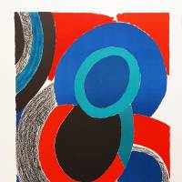 Dans Vol de nuit, Sonia Delaunay illustre avec brio sa maîtrise des relations de couleurs. La juxtaposition des aplats de bleu foncé, rouge, vert turquoise et noir crée des contrastes forts qui jouent sur la complémentarité et la disharmonie. Cette interaction orphique est une exploration chromatique saisissante, où Delaunay semble jouer avec notre perception.