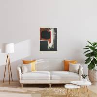 Cette eau-forte et aquatinte d’un beau format aborde une géométrie construite en plans verticaux dont la composition est rythmée autour de trois couleurs. Les nuances de noir charbon, de rouge ocre et de blanc lumineux apportent textures et reliefs à l’œuvre.