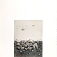 As a successor to nihonga, Asada maintains a deep attention to the ephemeral and subtle nature of materials, to emptiness and fullness. The boundary between the pebbles and the sky seems to capture a fleeting moment, where reality itself appears on the verge of dissolving.