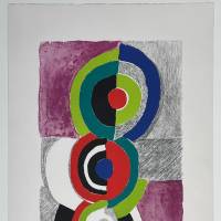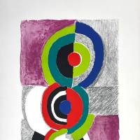 In The Three Graces, Sonia Delaunay transposes the ancient myth into a purely abstract language. The figures are no longer bodies, but colorful rhythms, circles that intertwine, respond to each other, and extend. Grace becomes movement: that of light, color, and the gaze. This lithograph reflects Delaunay's conviction that color can express the world through the vibration of tones alone.